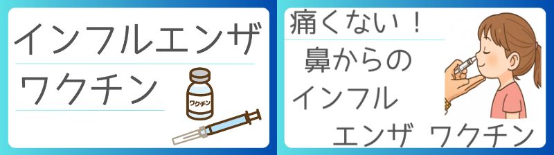 | 対象 | 2歳以上の方(※小児の接種についてはお電話にてご相談ください) 持病のある方やご高齢の方は特に接種をおすすめいたします。 経鼻インフルエンザワクチンは年齢制限あり: 2歳以上、13歳未満 |